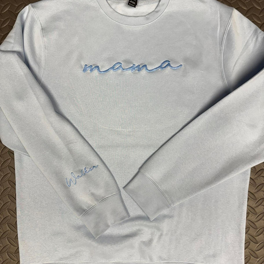 Show of how much you love being a mom with this custom embroidered Mama Crewneck, Add your kiddos names to the sleeves!